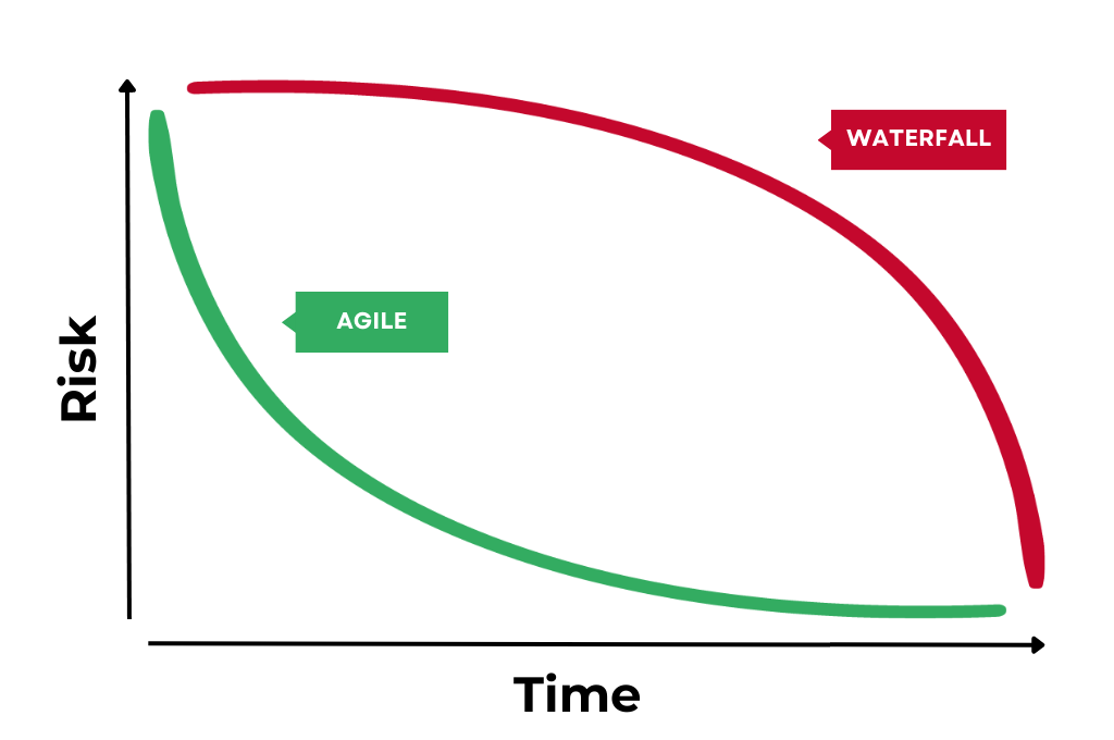 To understand how Agile transparency influences the mitigation of risks, let’s compare the risk profiles of Agile and Waterfall methodologies.