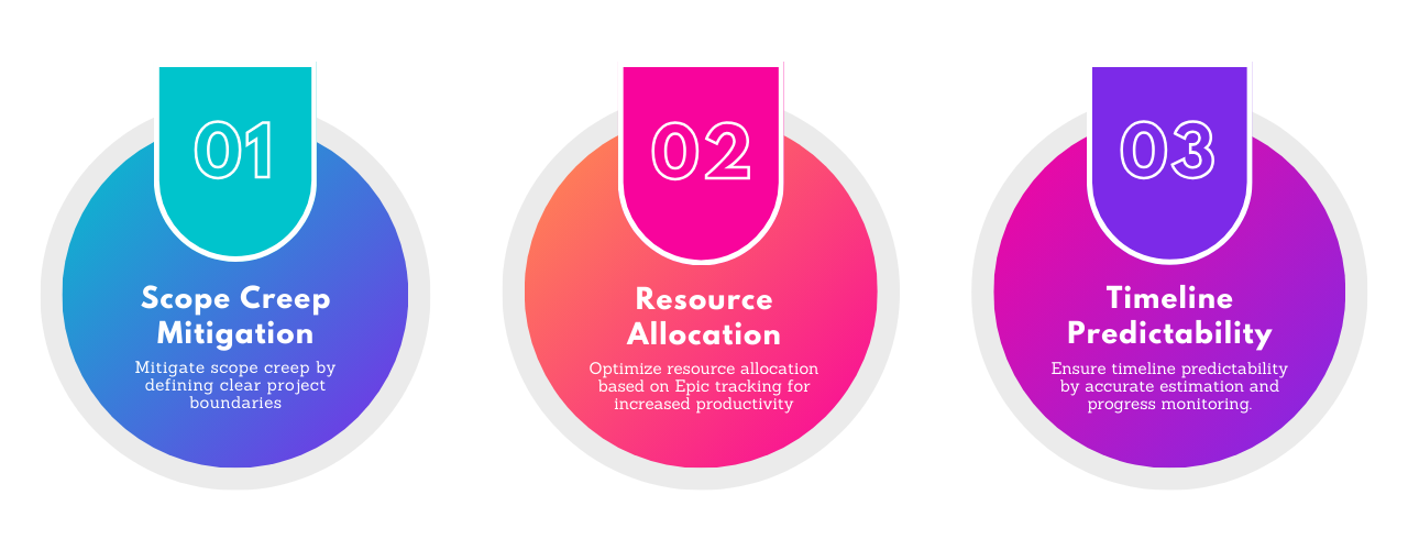 Solution: Tracking Epics helps in clearly defining and limiting the project scope. By having a well-defined Epic, teams can reduce the likelihood of scope creep, ensuring that the focus remains on the primary objectives and preventing unnecessary project expansions.