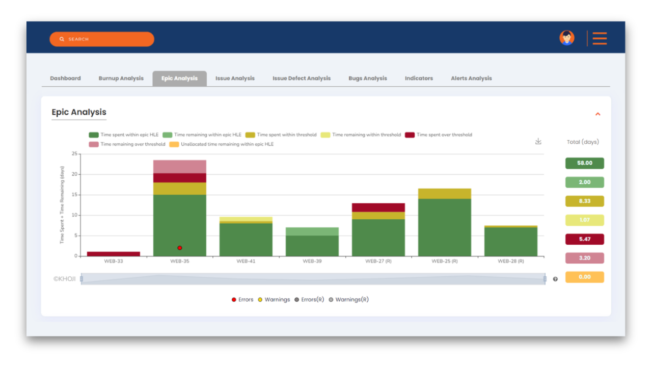 To make the tracking of Epics even more efficient, tools like Khoji for Agile can be a game-changer. Khoji not only allows teams to estimate efforts against each Epic accurately but also provides a comprehensive view of the time spent on each Epic. This combination of estimation tracking, and time management features ensures that teams can refine their processes for future projects based on real-time data.