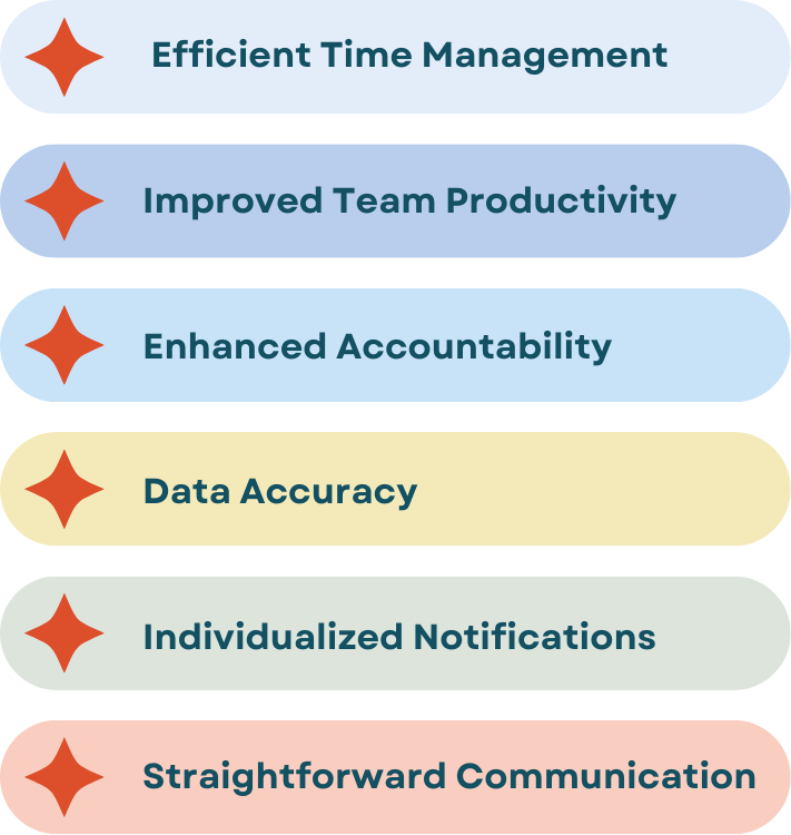 - Data Accuracy: Timely reminders lead to a more accurate and an up-to-date work log, providing managers with reliable data for decision-making.